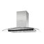 Угловые вытяжки — разновидность купольных. В соответствии со своим названием эти устройства крепятся над угловыми варочными поверхностями, удачно занимая свободное место в углу помещения.