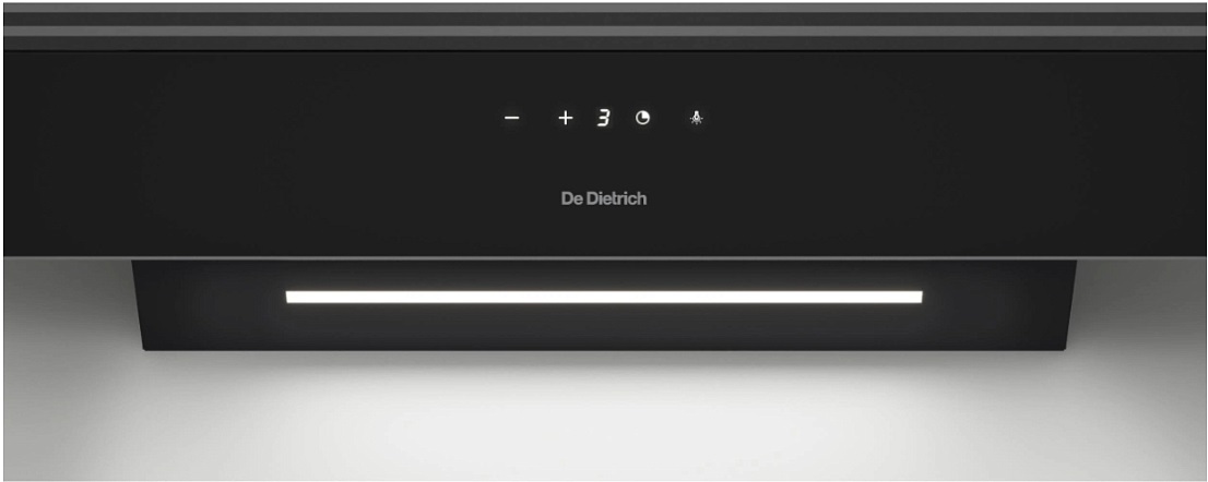 Данная вытяжка крепится на стену и имеет наклонную фронтальную панель, что придает изюминку дизайну и позволяет сохранить свободное рабочее пространство внизу. Обратите внимание на цветовые сочетания модели De Dietrich DHV4974HB, чтобы органично вписать ее в свою квартиру. Оттенок корпуса: черный. Благодаря лампочкам, которые расположены на нем, можно освещать плиту и столешницу рядом, чтобы готовить было еще проще и приятнее.