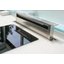 Вытяжки, встраиваемые в столешницу — эффективная инновация, которая подойдет для установки в кухне любой площади. Такие вытяжки размещаются за варочной поверхностью или рядом с ней. В отключенном состоянии всасывающая панель находится под столешницей, но после включения одной или нескольких конфорок она автоматически выдвигается при помощи специального лифтового механизма. Загрязненный воздух улавливается, не успевая распространиться по помещению. Когда вытяжка убрана, на виду остается только сенсорная панель управления. Недостатком подобных моделей является только сравнительно высокая цена.
