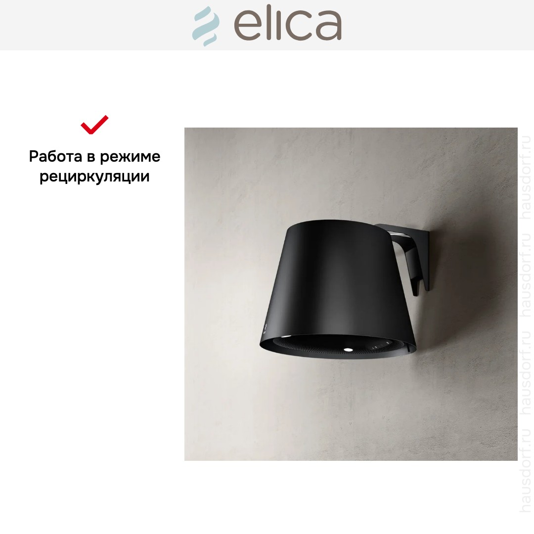 Данная вытяжка выглядит изящной и невесомой за счет свободного пространства между креплением и основным корпусом. Обратите внимание на цветовые сочетания модели Elica EASY UX BL MAT/F/50, чтобы органично вписать ее в свою квартиру. Оттенок корпуса: черный. Благодаря лампочкам, которые расположены на нем, можно освещать плиту и столешницу рядом, чтобы готовить было еще проще и приятнее.