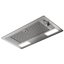 Вытяжки, встраиваемые в столешницу — эффективная инновация, которая подойдет для установки в кухне любой площади. Такие вытяжки размещаются за варочной поверхностью или рядом с ней. В отключенном состоянии всасывающая панель находится под столешницей, но после включения одной или нескольких конфорок она автоматически выдвигается при помощи специального лифтового механизма. Загрязненный воздух улавливается, не успевая распространиться по помещению. Когда вытяжка убрана, на виду остается только сенсорная панель управления. Недостатком подобных моделей является только сравнительно высокая цена.