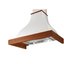 Еще один универсальный цвет — белый, он особенно хорошо подходит для небольших кухонь, так как зрительно способен расширить пространство. На белом фона меньше заметны капли воды и даже частицы жира. В классическом или античном белом выполняются купольные и каминные вытяжки, угловые и встраиваемые модели. Светлые кремовые тона, оттенок слоновой кости — наиболее распространенный вариант для больших вытяжек с окантовкой из натурального дерева.