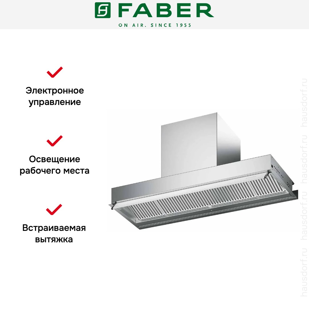Итальянская компания Faber завоевала мировую известность благодаря своим оригинальным и надежным вытяжкам. История бренда началась в 1955 году: инженер А. Галасси с партнерами основал компанию по производству изделий из пластика — самого модного в то время материала. Оригинальную вытяжку фирма представила в 1958 году — она получила название по наименованию пластмассы Plexiglas.
