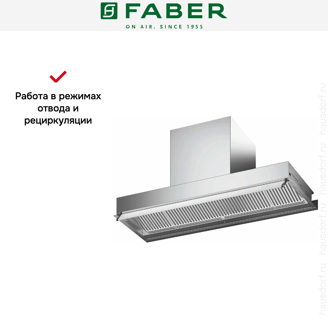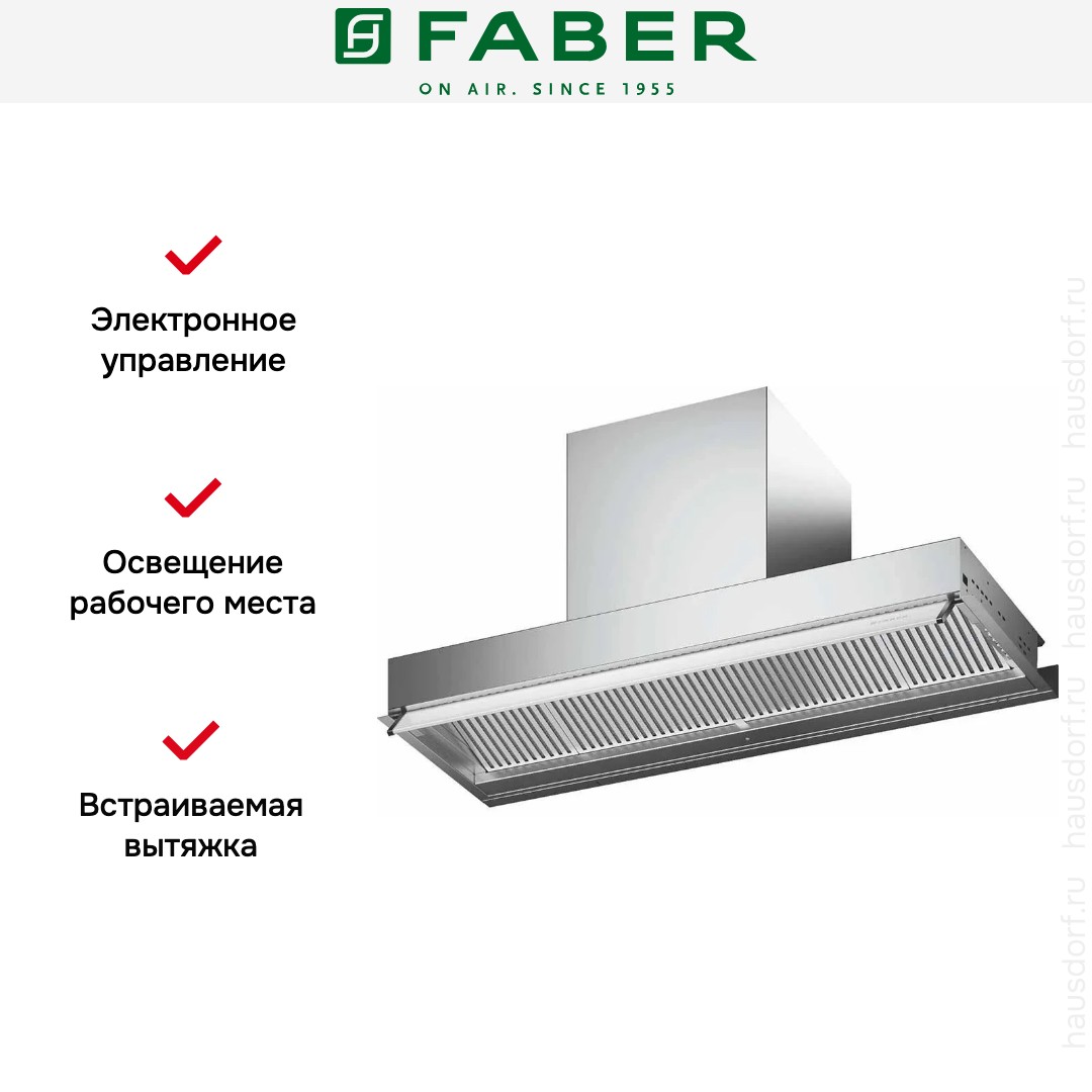 Итальянская компания Faber завоевала мировую известность благодаря своим оригинальным и надежным вытяжкам. История бренда началась в 1955 году: инженер А. Галасси с партнерами основал компанию по производству изделий из пластика — самого модного в то время материала. Оригинальную вытяжку фирма представила в 1958 году — она получила название по наименованию пластмассы Plexiglas.