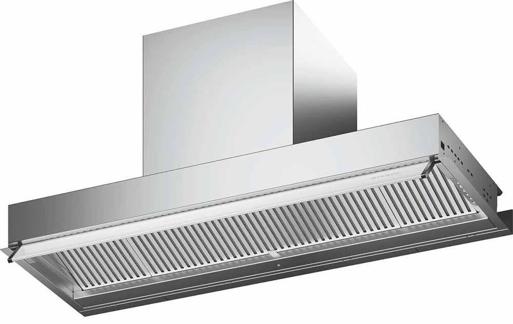 Вытяжка, встраиваемая в потолок, часто устанавливается над кухонным островом в просторной кухне и отличается достаточно высокой мощностью: она может работать как в режиме рециркуляции, так и в режиме отвода, так как воздуховод также скрыт в потолке. Вытяжки могут монтироваться в подвесной потолок либо устанавливаться в специальные многоярусные конструкции из гипсокартона непосредственно во время ремонта кухни. Для управления ими используется пульт ДУ.