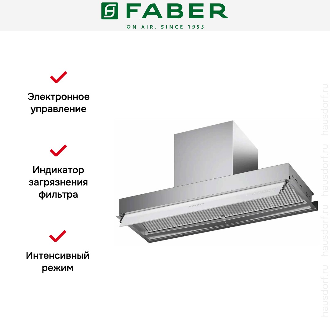 Итальянская компания Faber завоевала мировую известность благодаря своим оригинальным и надежным вытяжкам. История бренда началась в 1955 году: инженер А. Галасси с партнерами основал компанию по производству изделий из пластика — самого модного в то время материала. Оригинальную вытяжку фирма представила в 1958 году — она получила название по наименованию пластмассы Plexiglas.