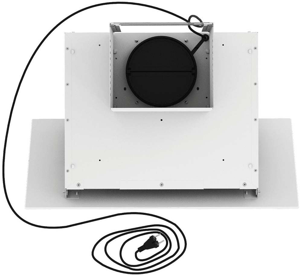 Воздух всасывается по периметру вытяжки через узкие щели. Он собирается в потоки, которые направляются прямо к фильтрам внутри, не рассеивается на кухне. Благодаря этой технологией вытяжку можно сделать компактнее и энергоэффективнее.