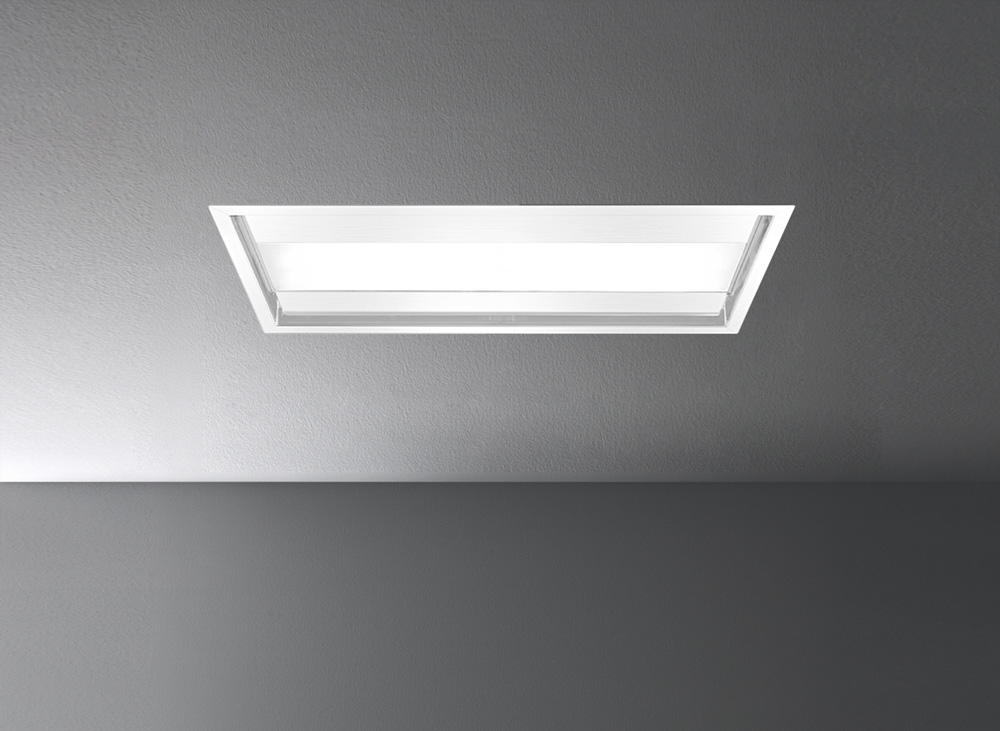 Вытяжка, встраиваемая в потолок, часто устанавливается над кухонным островом в просторной кухне и отличается достаточно высокой мощностью: она может работать как в режиме рециркуляции, так и в режиме отвода, так как воздуховод также скрыт в потолке. Вытяжки могут монтироваться в подвесной потолок либо устанавливаться в специальные многоярусные конструкции из гипсокартона непосредственно во время ремонта кухни. Для управления ими используется пульт ДУ.