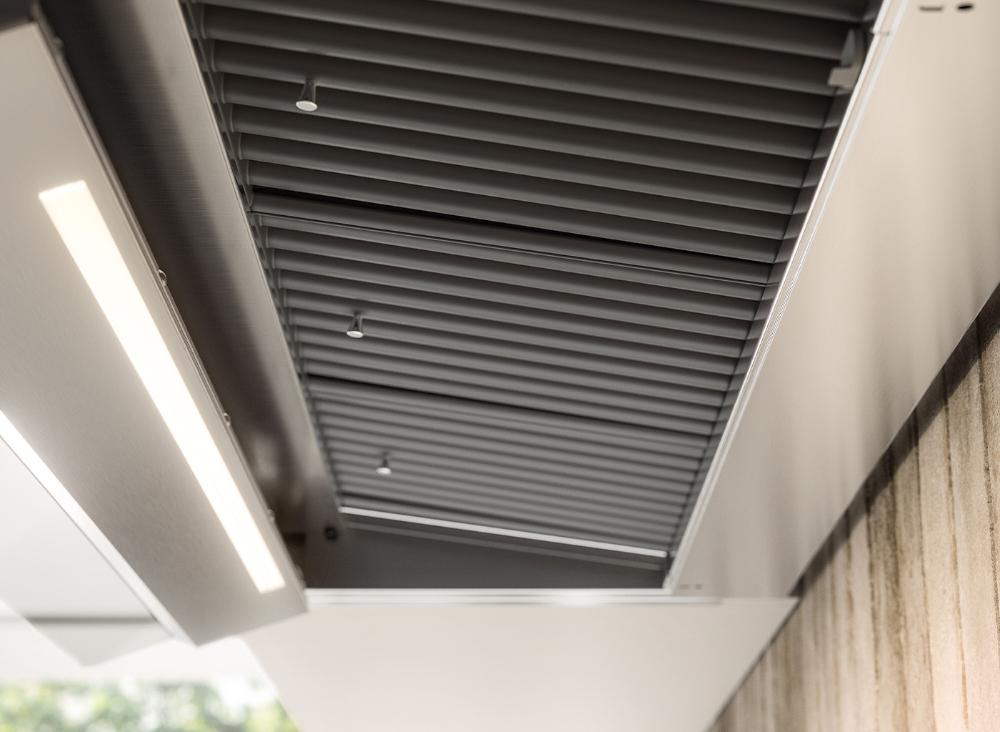 Вытяжка, встраиваемая в потолок, часто устанавливается над кухонным островом в просторной кухне и отличается достаточно высокой мощностью: она может работать как в режиме рециркуляции, так и в режиме отвода, так как воздуховод также скрыт в потолке. Вытяжки могут монтироваться в подвесной потолок либо устанавливаться в специальные многоярусные конструкции из гипсокартона непосредственно во время ремонта кухни. Для управления ими используется пульт ДУ.