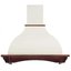 Особенно разнообразен ассортимент классических вытяжек с окантовкой из натурального дерева. Корпус таких моделей выполняется в спокойном белом или бежевом цвете, хорошо сочетающемся с оттенками натурального дерева — мореного дуба, бука, вишни или ореха. Нередко для окантовки используется окрашенное дерево в тон с цветом купола: особенно популярны оттенки ванили, бежевый и кремовый. Иногда дерево специально оставляют неокрашенным, чтобы пользователь мог подобрать оттенок самостоятельно.