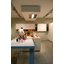 Вытяжка, встраиваемая в потолок, часто устанавливается над кухонным островом в просторной кухне и отличается достаточно высокой мощностью: она может работать как в режиме рециркуляции, так и в режиме отвода, так как воздуховод также скрыт в потолке. Вытяжки могут монтироваться в подвесной потолок либо устанавливаться в специальные многоярусные конструкции из гипсокартона непосредственно во время ремонта кухни. Для управления ими используется пульт ДУ.