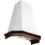 Особенно разнообразен ассортимент классических вытяжек с окантовкой из натурального дерева. Корпус таких моделей выполняется в спокойном белом или бежевом цвете, хорошо сочетающемся с оттенками натурального дерева — мореного дуба, бука, вишни или ореха. Нередко для окантовки используется окрашенное дерево в тон с цветом купола: особенно популярны оттенки ванили, бежевый и кремовый. Иногда дерево специально оставляют неокрашенным, чтобы пользователь мог подобрать оттенок самостоятельно.