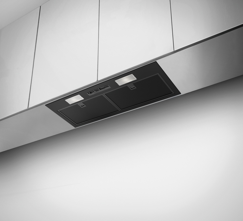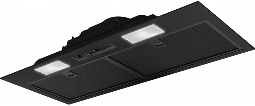 Вытяжки, встраиваемые в столешницу — эффективная инновация, которая подойдет для установки в кухне любой площади. Такие вытяжки размещаются за варочной поверхностью или рядом с ней. В отключенном состоянии всасывающая панель находится под столешницей, но после включения одной или нескольких конфорок она автоматически выдвигается при помощи специального лифтового механизма. Загрязненный воздух улавливается, не успевая распространиться по помещению. Когда вытяжка убрана, на виду остается только сенсорная панель управления. Недостатком подобных моделей является только сравнительно высокая цена.