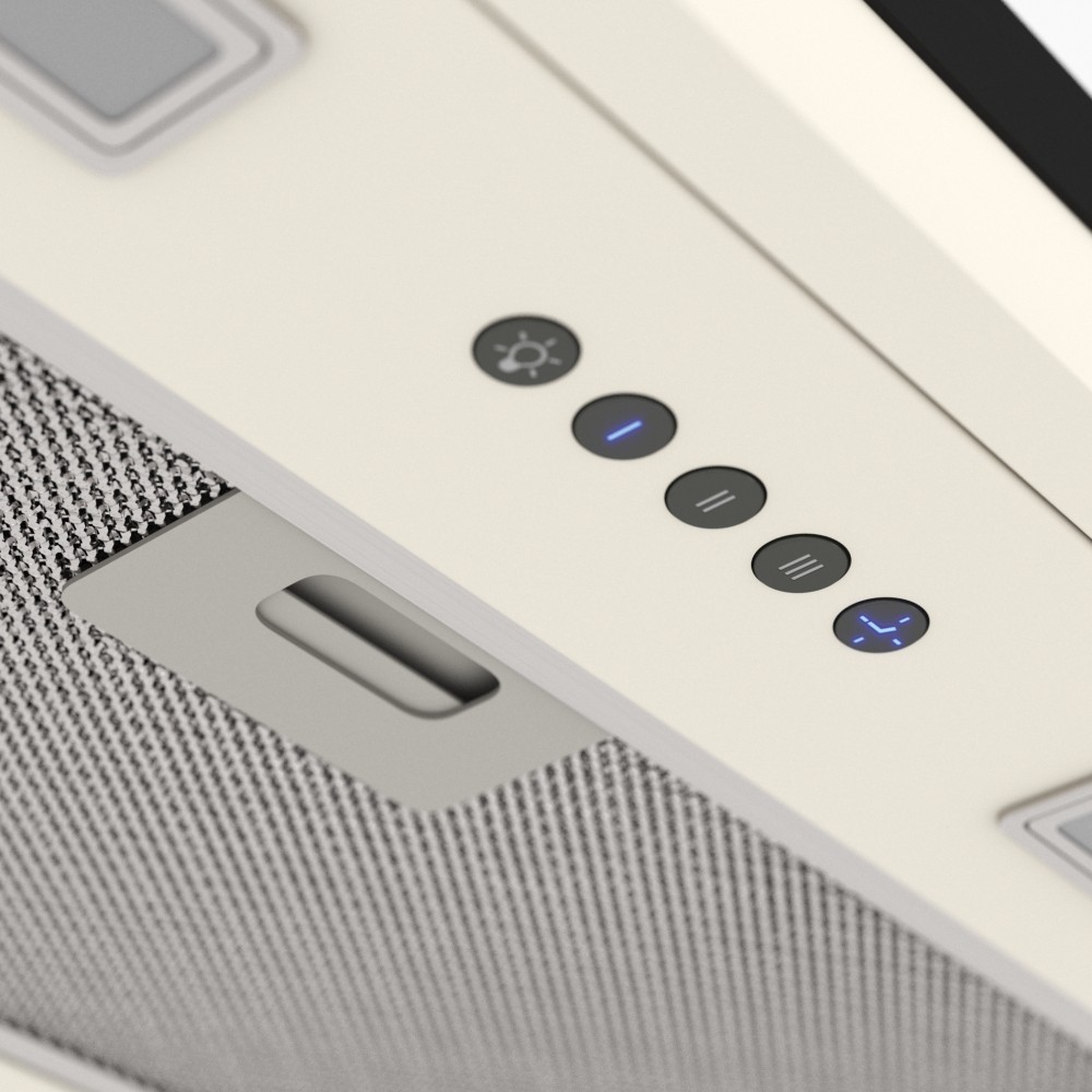 Встраиваемые и простые настенные модели, как правило, оснащаются боковой панелью управления, состоящей из нескольких кнопок. Их количество зависит от числа скоростей, наличия интенсивного режима и встроенного освещения. Боковое расположение панели управления делает вытяжку еще более незаметной.