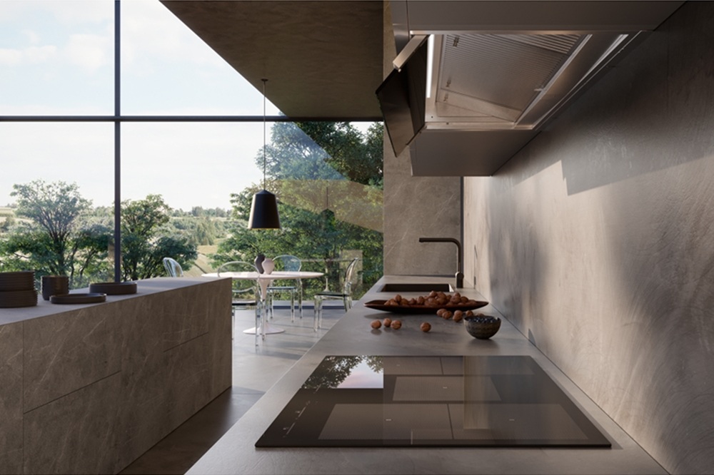 Вытяжки, встраиваемые в столешницу — эффективная инновация, которая подойдет для установки в кухне любой площади. Такие вытяжки размещаются за варочной поверхностью или рядом с ней. В отключенном состоянии всасывающая панель находится под столешницей, но после включения одной или нескольких конфорок она автоматически выдвигается при помощи специального лифтового механизма. Загрязненный воздух улавливается, не успевая распространиться по помещению. Когда вытяжка убрана, на виду остается только сенсорная панель управления. Недостатком подобных моделей является только сравнительно высокая цена.