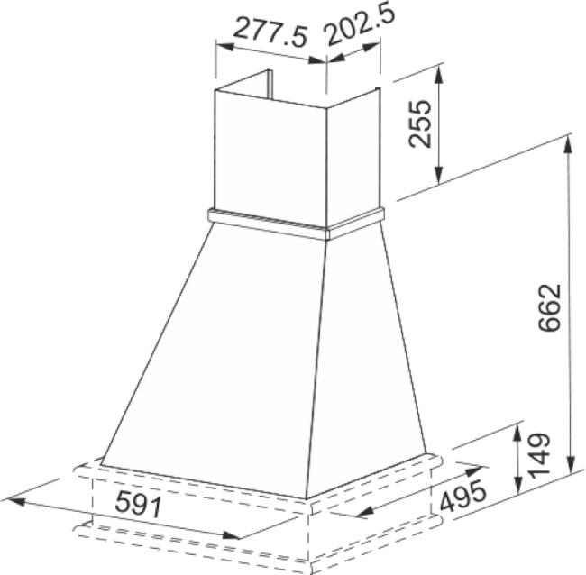 Эти модели выделяются своей формой — треугольным или более фигурным куполом, которым располагается ровно над варочной панелью. Такая конструкция считается традиционной и вместе с коробом воздуховода напоминает классическую каминную трубу. Подойдет стандартной и большой кухне в зависимости от ширины купола.