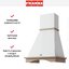 Еще один универсальный цвет — белый, он особенно хорошо подходит для небольших кухонь, так как зрительно способен расширить пространство. На белом фона меньше заметны капли воды и даже частицы жира. В классическом или античном белом выполняются купольные и каминные вытяжки, угловые и встраиваемые модели. Светлые кремовые тона, оттенок слоновой кости — наиболее распространенный вариант для больших вытяжек с окантовкой из натурального дерева.