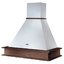 Еще один универсальный цвет — белый, он особенно хорошо подходит для небольших кухонь, так как зрительно способен расширить пространство. На белом фона меньше заметны капли воды и даже частицы жира. В классическом или античном белом выполняются купольные и каминные вытяжки, угловые и встраиваемые модели. Светлые кремовые тона, оттенок слоновой кости — наиболее распространенный вариант для больших вытяжек с окантовкой из натурального дерева.