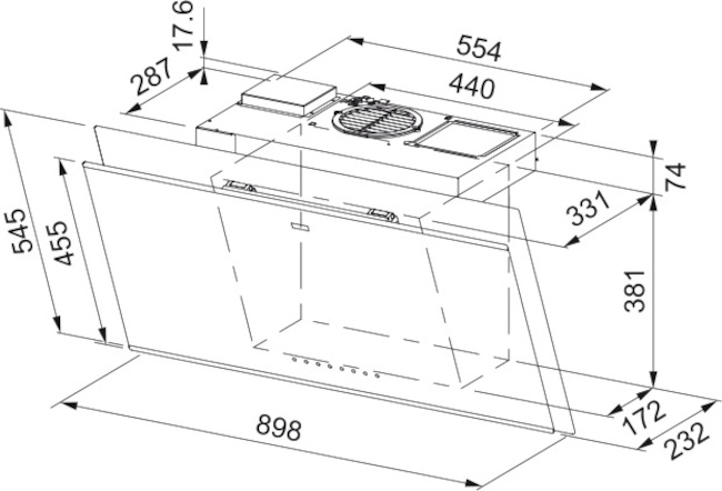 При этом необходимо иметь в виду тип вытяжки. Так, из-за специфики конструкции глубина наклонных и настенных приборов не имеет большого значения. Учитывать этот параметр необходимо, если пользователь выбирает купольную, каминную, угловую, встраиваемую или островную модель. Глубина рабочей поверхности всасывания в этом случае должна быть равна глубине варочной панели или несколько превышать ее. Стоит помнить, что у больших купольных или угловых моделей размеры корпуса могут намного превышать размеры варочной панели.
