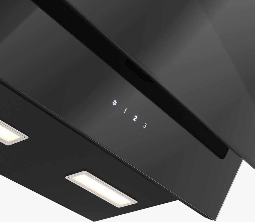 Сенсорная электронная панель управления оснащается цифровым дисплеем, на котором высвечивается основная информация о текущем состоянии устройства. Для выбора скорости всасывания в таких вытяжках будет достаточно одной кнопки: ее последовательное нажатие позволяет изменять ступени мощности, а их значение появляется на дисплее.