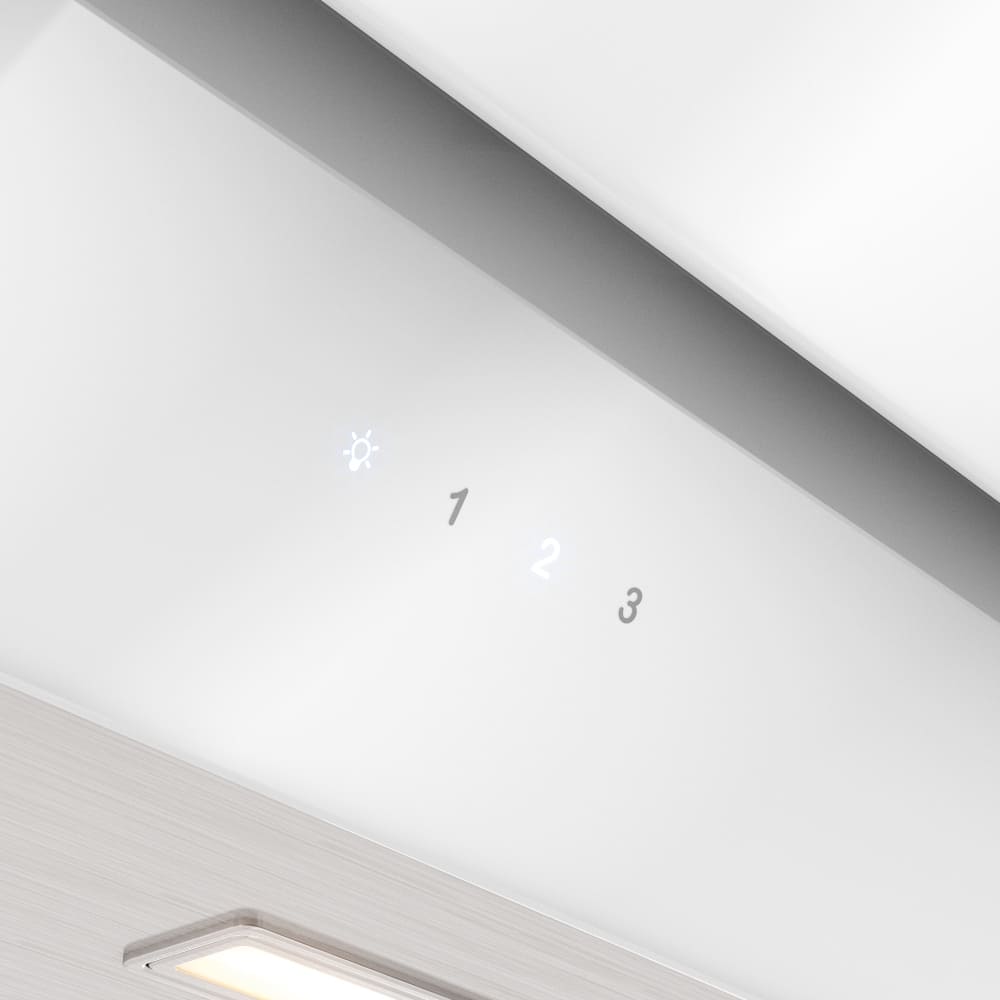 Встраиваемые и простые настенные модели, как правило, оснащаются боковой панелью управления, состоящей из нескольких кнопок. Их количество зависит от числа скоростей, наличия интенсивного режима и встроенного освещения. Боковое расположение панели управления делает вытяжку еще более незаметной.