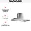 Для удобства пользователя следует выбирать вытяжку так, чтобы глубина даже самого большого купола не превышала глубину столешницы. У большинства современных купольных моделей глубина точно равна ширине, поскольку и стандартные варочные поверхности чаще всего имеют квадратную форму. Это значит, что вытяжка должна располагаться точно над поверхностью плиты, так, чтобы их оси совпадали. Стандартные размеры глубины таким образом могут составлять 30, 45, 50, 60, 80, 90, 100, 120 см.