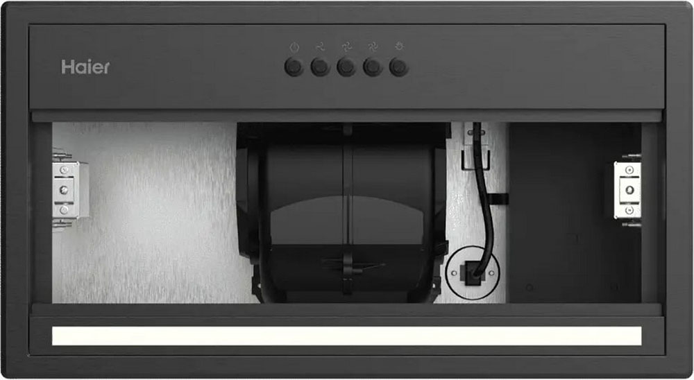 Встраиваемая вытяжка — выбор тех, кто хочет максимально задекорировать технику, или владельцев маленькой кухни. Тип встраивания: в шкаф. Обратите внимание на цветовые сочетания модели Haier HVQ-B2532B, чтобы органично вписать ее в свою квартиру. Оттенок корпуса: черный.
