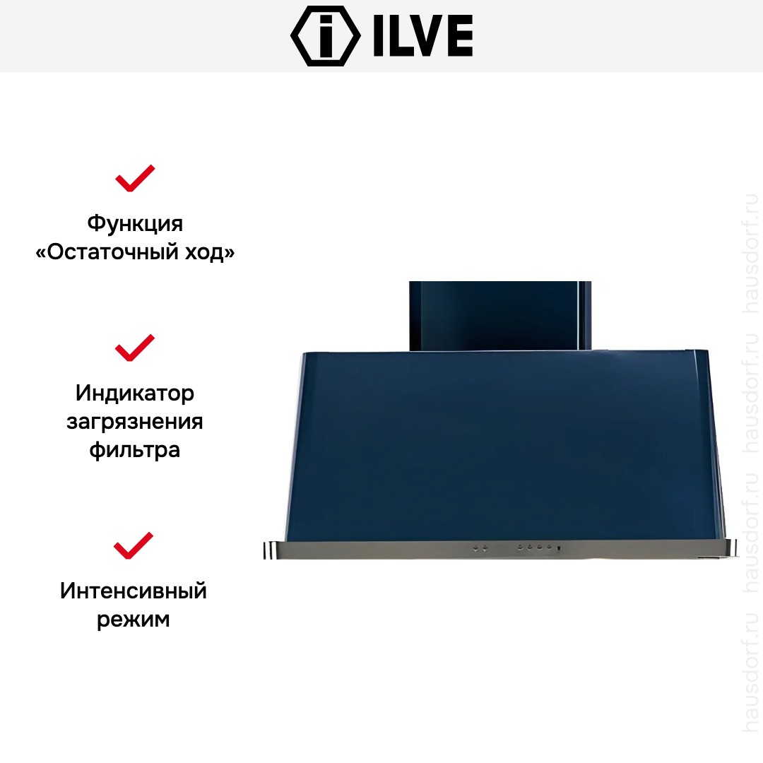 Корпус вытяжки похож на купол, что не только выглядит стильно, но и укрепляет всю конструкцию. Обратите внимание на цветовые сочетания модели Ilve AM150/BL, чтобы органично вписать ее в свою квартиру. Оттенок корпуса: синий. Благодаря лампочкам, которые расположены на нем, можно освещать плиту и столешницу рядом, чтобы готовить было еще проще и приятнее.