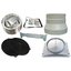 К фурнитуре относятся элементы, находящиеся на панели управления, многочисленные ручки для выдвижения или изменения высоты расположения вытяжек, декоративные решетки и трубы. Иногда специалисты относят к фурнитуре и сменные жироулавливающие фильтры для грубой очистки воздуха, угольные фильтры тонкой очистки для удаления неприятных запахов, заслонки для предупреждения обратной тяги, короба и гофрированные трубы для воздуховодов.