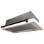 Можно выделить два основных вида вытяжек с выдвижной панелью. В вытяжках, встраиваемых в подвесной шкаф, выдвижная панель необходима, так как размеры таких устройств определяются размерами самого шкафа. В закрытом состоянии глубина вытяжки может быть меньше глубины варочной поверхности. Телескопическая выдвижная панель, которая устанавливается преимущественно в устройствах, работающих в режиме отвода, гарантирует полный захват воздуха, загрязненного каплями жира, частицами сажи, испарениями. Панель можно выдвинуть как нажатием на кнопку, так и потянув за ее переднюю часть. В некоторых моделях при подобном выдвижении одновременно включается подсветка. Когда же панель убрана, вытяжка становится практически незаметной — такой вариант лучше всего подходит для небольшой кухни.