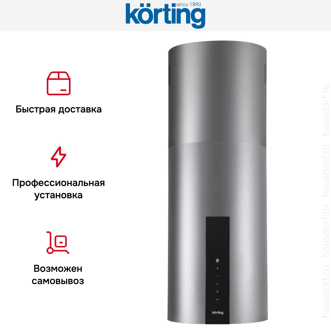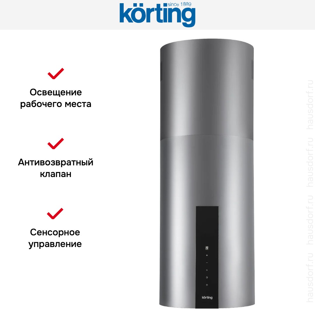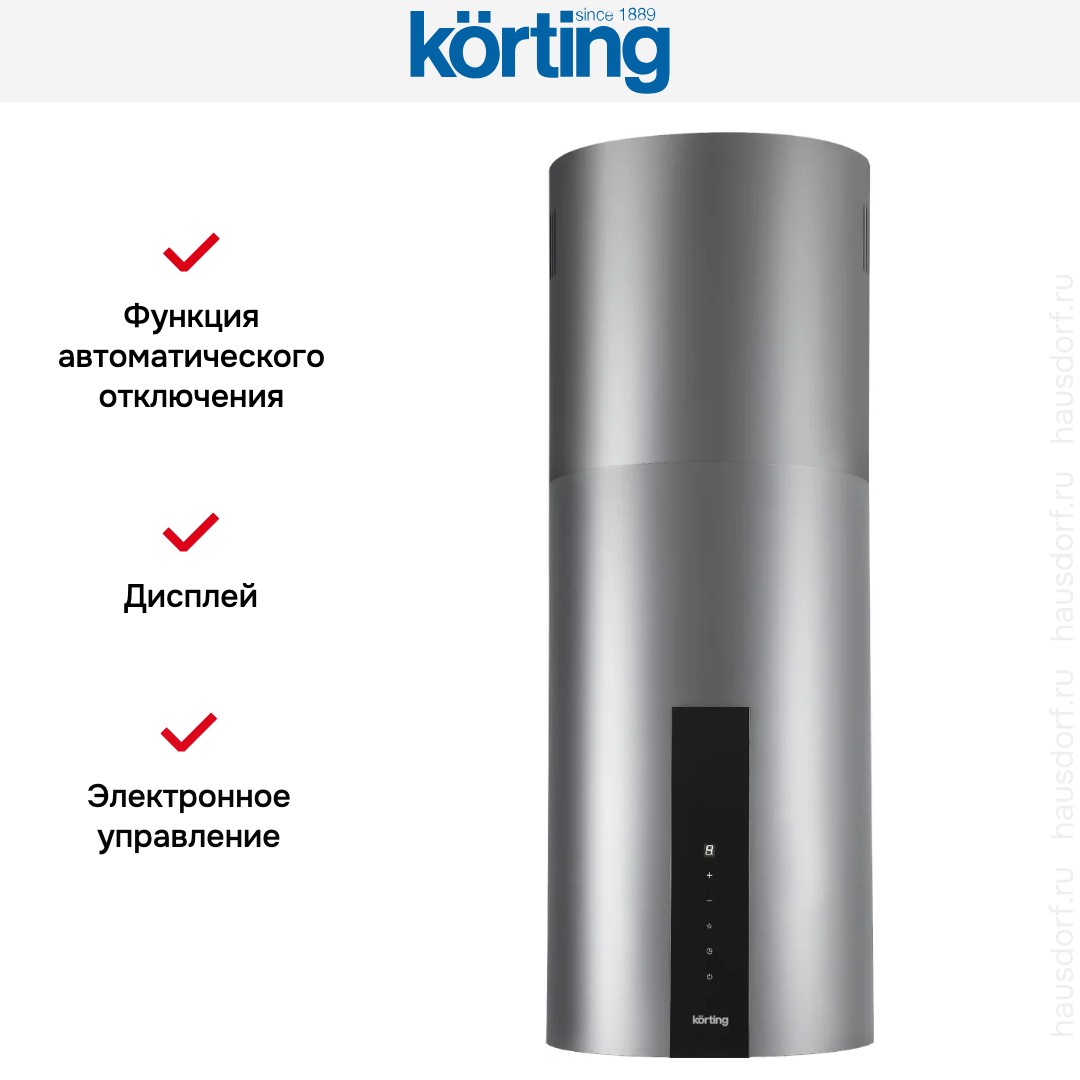 Островная вытяжка Korting KHA 35808 DX Cylinder создана для тех, кто ценит современный дизайн и практичность на кухне. Она выполнена из нержавеющей стали и выглядит сдержанно и элегантно в любом интерьере. Цилиндрическая форма корпуса выгодно подчеркивает центральную зону кухни и создаёт эффект парящей над плитой конструкции. Компактная ширина и глубина 35,15 см делают прибор подходящим для островов разного формата, не перегружая пространство.