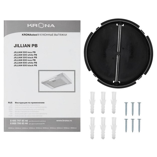 Встраиваемая вытяжка — выбор тех, кто хочет максимально задекорировать технику, или владельцев маленькой кухни. Тип встраивания: в шкаф. Обратите внимание на цветовые сочетания модели KRONA JILLIAN 500 black PB, чтобы органично вписать ее в свою квартиру. Оттенок корпуса: черный. Благодаря лампочкам, которые расположены на нем, можно освещать плиту и столешницу рядом, чтобы готовить было еще проще и приятнее.