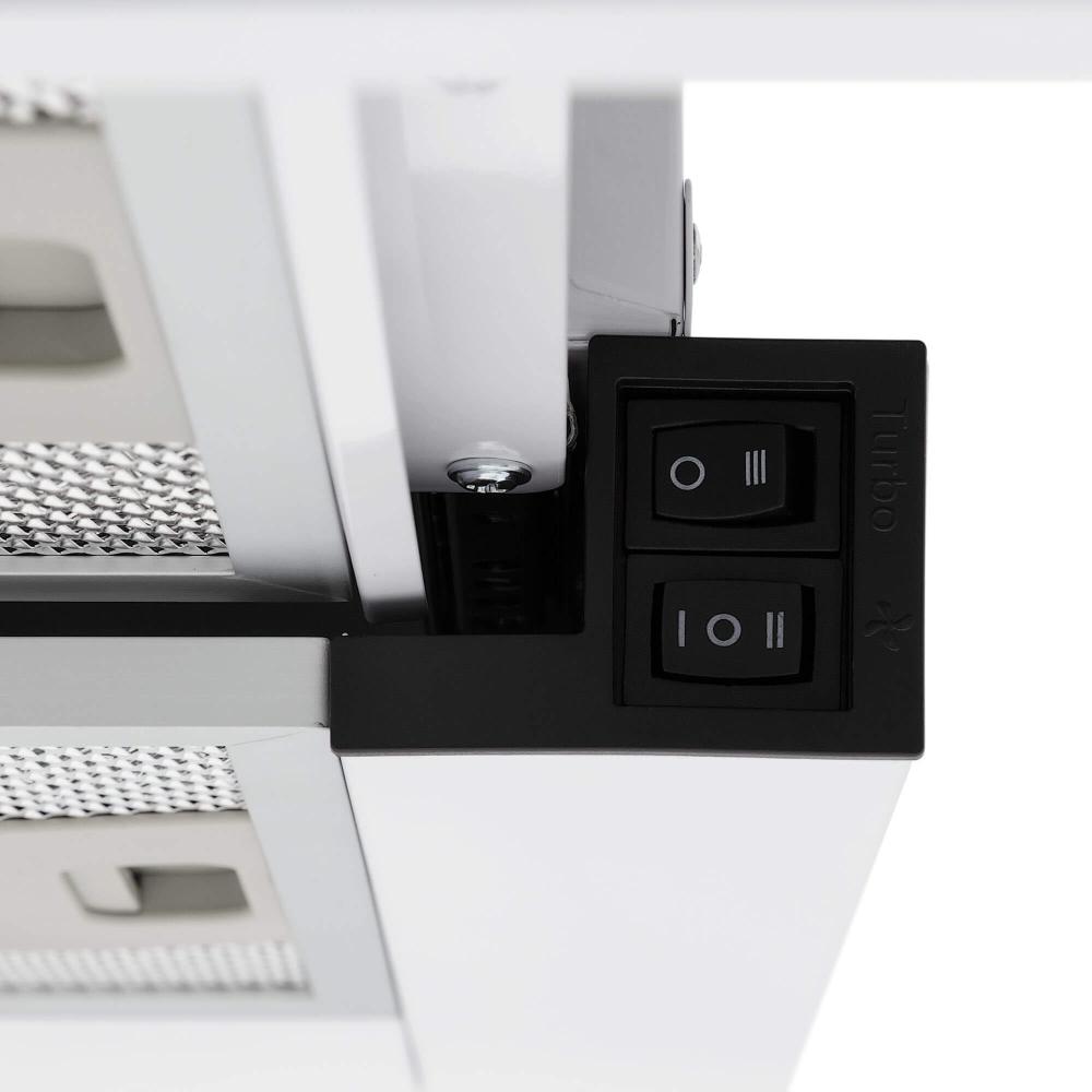 Встраиваемая вытяжка — выбор тех, кто хочет максимально задекорировать технику, или владельцев маленькой кухни. Тип встраивания: в шкаф. Обратите внимание на цветовые сочетания модели KRONA KAMILLA F 450 white, чтобы органично вписать ее в свою квартиру. Оттенок корпуса: белый. Благодаря лампочкам, которые расположены на нем, можно освещать плиту и столешницу рядом, чтобы готовить было еще проще и приятнее. Фишка этой техники — выдвижная панель.