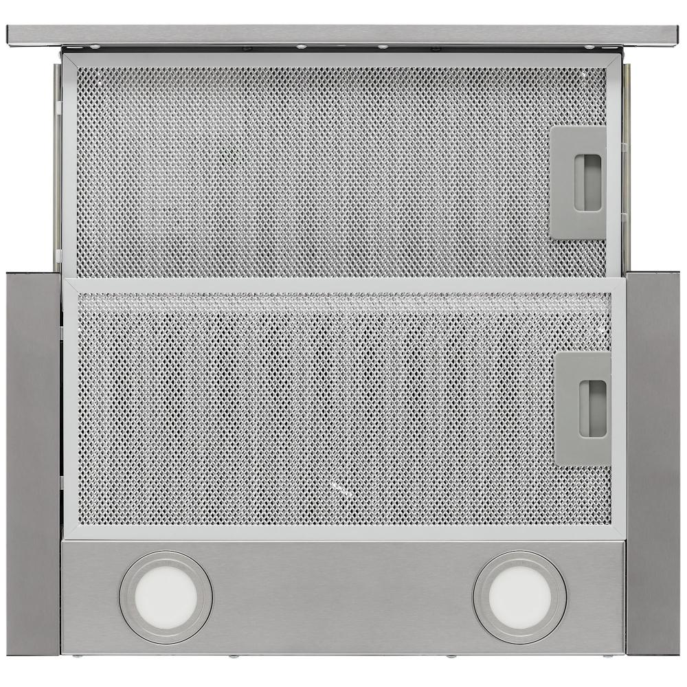 Вытяжки, встраиваемые в столешницу — эффективная инновация, которая подойдет для установки в кухне любой площади. Такие вытяжки размещаются за варочной поверхностью или рядом с ней. В отключенном состоянии всасывающая панель находится под столешницей, но после включения одной или нескольких конфорок она автоматически выдвигается при помощи специального лифтового механизма. Загрязненный воздух улавливается, не успевая распространиться по помещению. Когда вытяжка убрана, на виду остается только сенсорная панель управления. Недостатком подобных моделей является только сравнительно высокая цена.