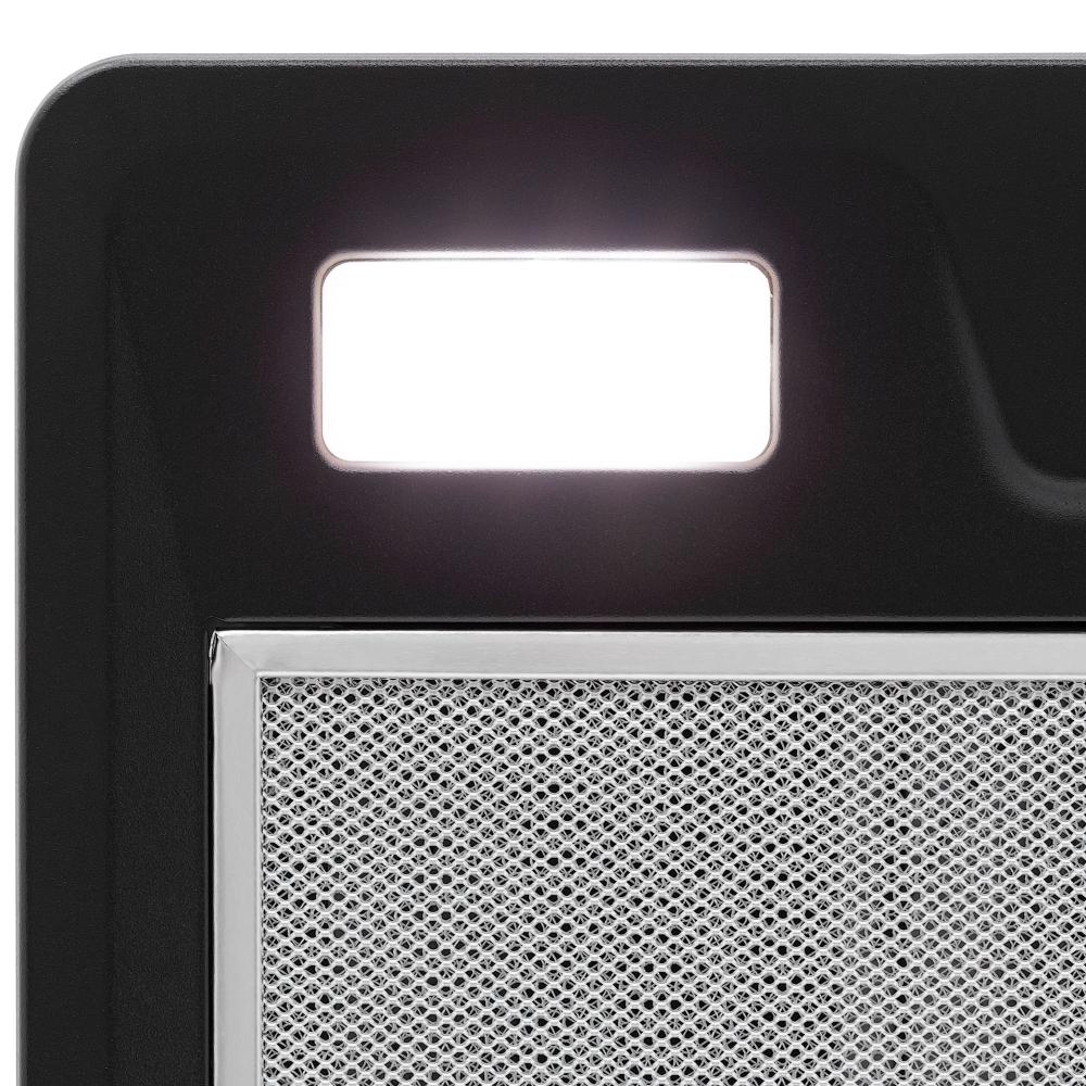 Встроенное освещение — функция, которая присутствует практически во всех современных вытяжках. Центрального освещения часто недостаточно для хорошего обзора рабочей зоны, особенно если над ней установлен подвесной шкаф. Интегрированные в вытяжку лампы позволяют готовить с комфортом, не напрягая зрение, их можно включать независимо от использования самой вытяжки.
