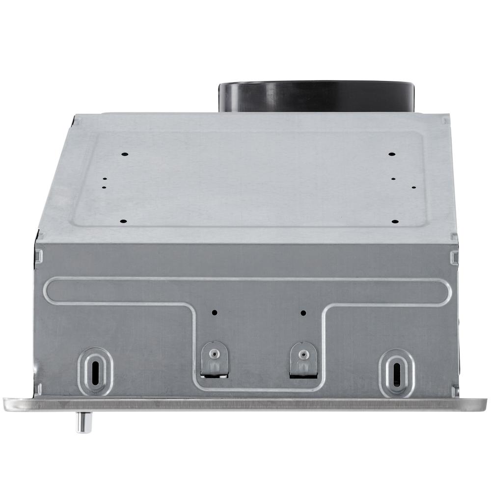 Встраивание вытяжки в шкаф — оптимальный вариант для малогабаритной кухни. Такие модели просты в установке, недороги, практически скрыты от глаз, их не нужно подбирать по внешнему виду, а также чем-то маскировать воздуховод. Уровень шума также снижается благодаря дополнительной звукоизоляции. Встроенные в шкаф модели могут дополняться выдвижной панелью, которая увеличивает площадь забора загрязненного воздуха. Иногда к встраиваемым относят также вытяжки, которые монтируются под подвесной шкаф, хотя их корпус остается на виду.