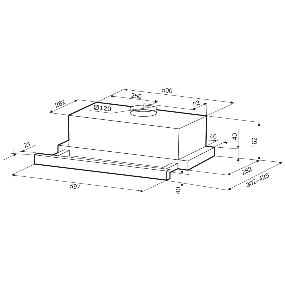 У многих встраиваемых моделей глубина может регулироваться, а рабочая всасывающая поверхность — увеличиваться благодаря выдвижному козырьку, но габариты корпуса такой вытяжки должны соответствовать размерам подвесного шкафа. Выбирать основные размеры вытяжки с соблюдением всех требований эффективности и безопасности работы следует также не в ущерб общему дизайну помещения.