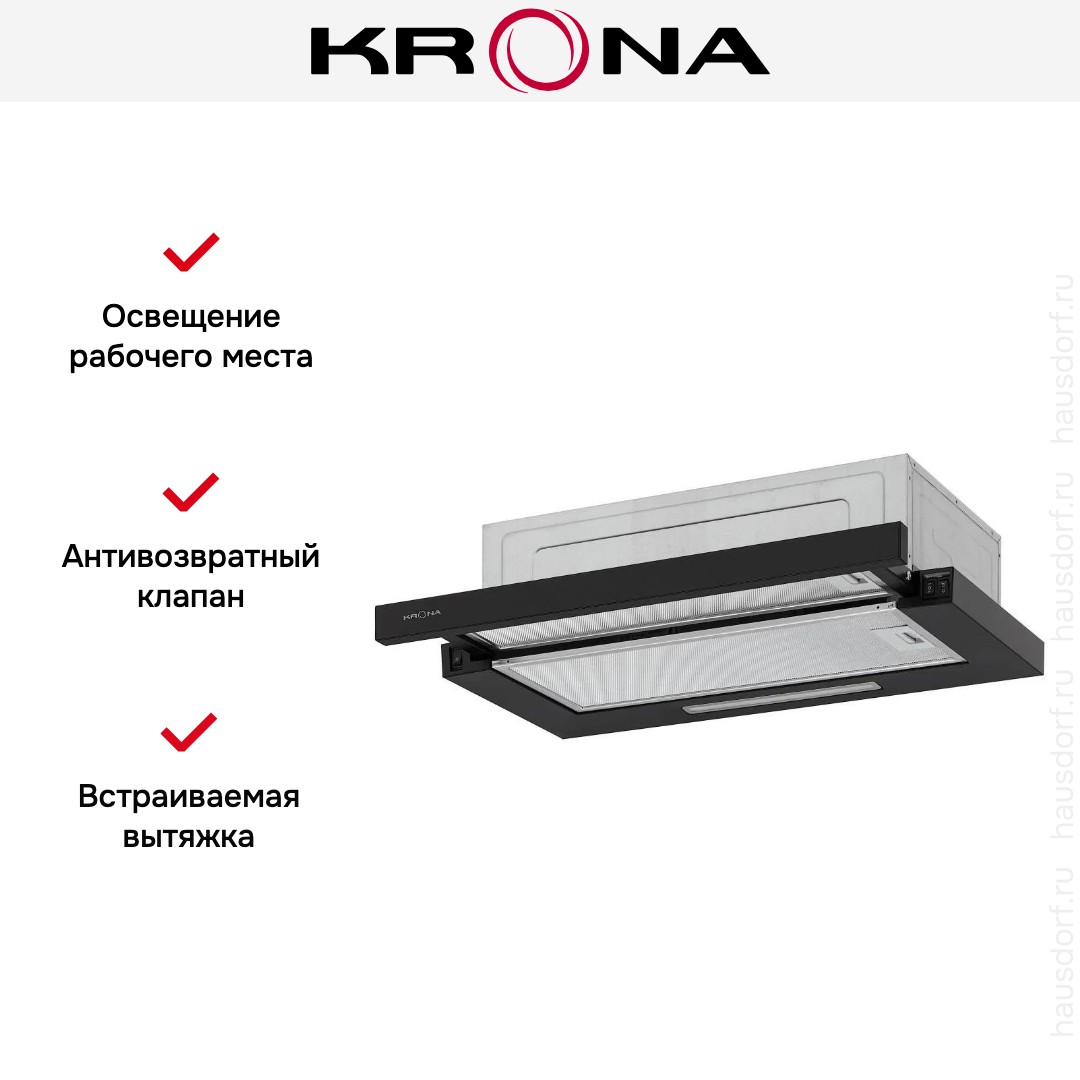 Встраиваемая вытяжка KRONA KERRY 600 BLACK PB V2 в Краснодаре