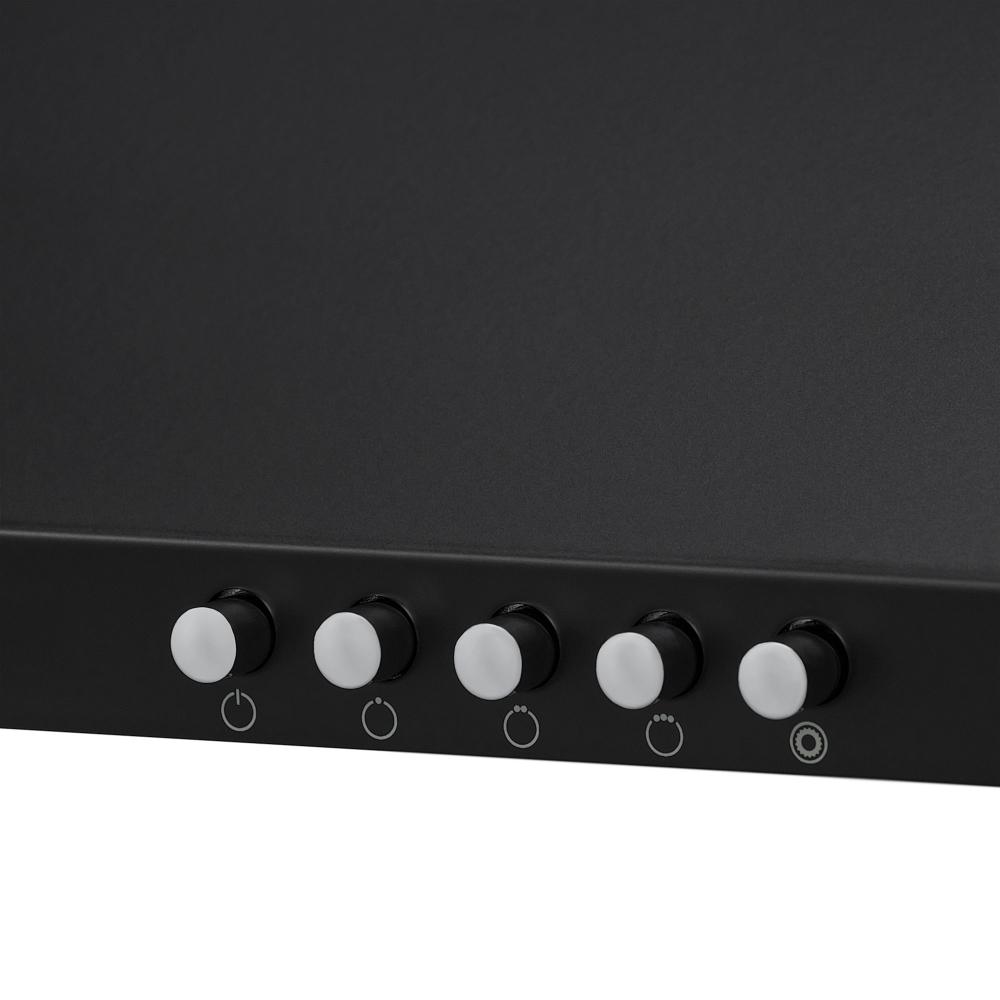 Встраиваемые и простые настенные модели, как правило, оснащаются боковой панелью управления, состоящей из нескольких кнопок. Их количество зависит от числа скоростей, наличия интенсивного режима и встроенного освещения. Боковое расположение панели управления делает вытяжку еще более незаметной.