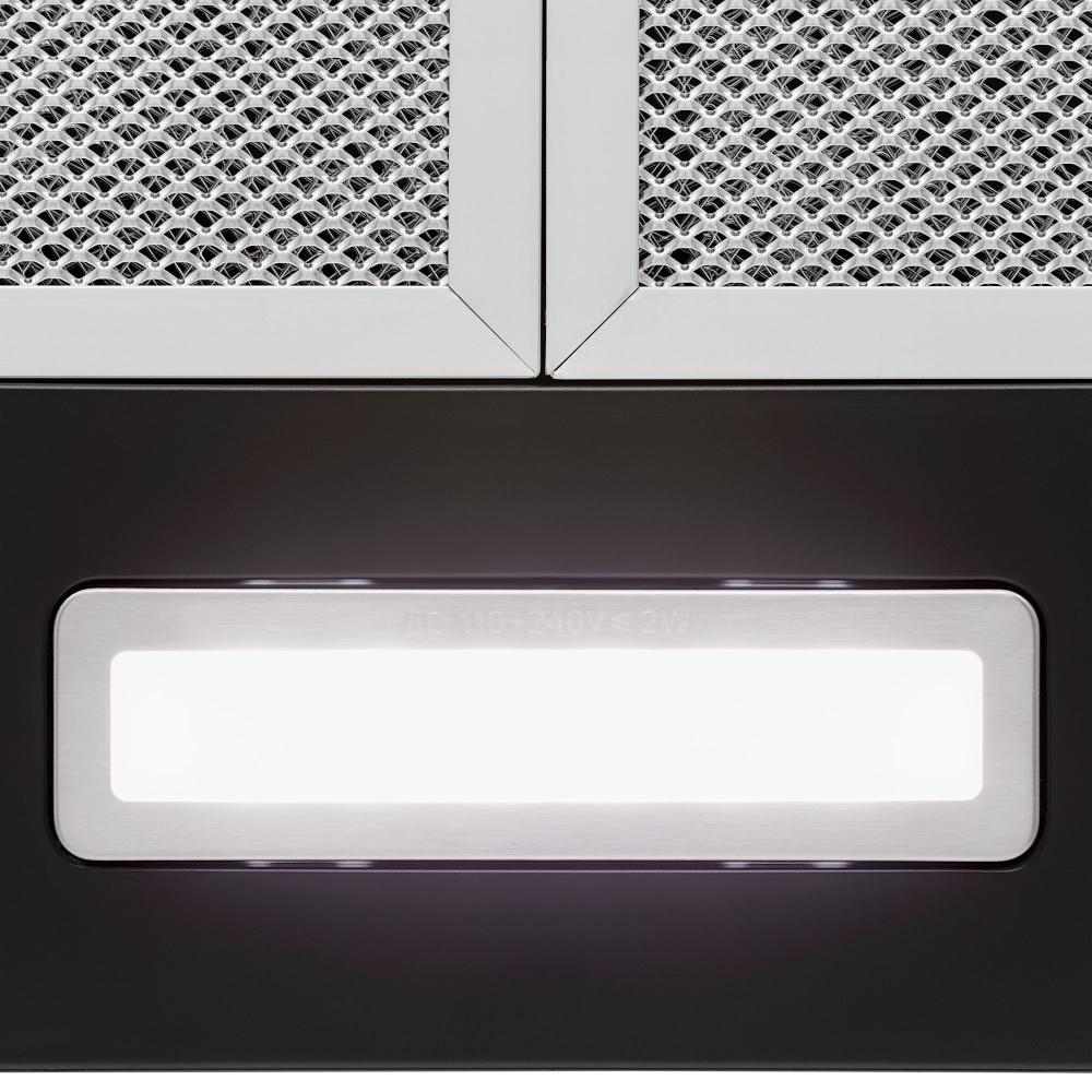 Встроенное освещение — функция, которая присутствует практически во всех современных вытяжках. Центрального освещения часто недостаточно для хорошего обзора рабочей зоны, особенно если над ней установлен подвесной шкаф. Интегрированные в вытяжку лампы позволяют готовить с комфортом, не напрягая зрение, их можно включать независимо от использования самой вытяжки.