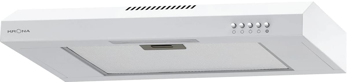 Крепление вытяжки к стене — стандартное для многих моделей, ими удобно управлять, так как кнопки находятся на расстоянии вытянутой руки. Обратите внимание на цветовые сочетания модели KRONA JILLIAN 600 white PB, чтобы органично вписать ее в свою квартиру. Оттенок корпуса: белый. Благодаря лампочкам, которые расположены на нем, можно освещать плиту и столешницу рядом, чтобы готовить было еще проще и приятнее.