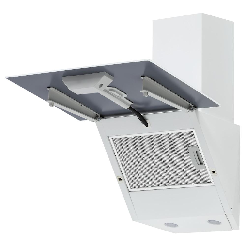 Наклонные модели — еще один вариант для небольшой кухни. Они размещаются на стене, но при высокой производительности не требуют много места. Их особенностью считается пониженный уровень шума и управление при помощи пульта ДУ. Эта категория вытяжек отличается большим разнообразием размеров, дизайна, цветов.