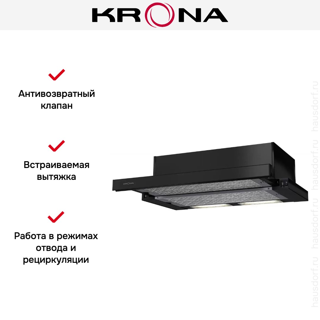 Встраиваемая вытяжка KRONA KAMILLA 600 BLACK (2 мотора) в Краснодаре