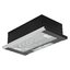 Можно выделить два основных вида вытяжек с выдвижной панелью. В вытяжках, встраиваемых в подвесной шкаф, выдвижная панель необходима, так как размеры таких устройств определяются размерами самого шкафа. В закрытом состоянии глубина вытяжки может быть меньше глубины варочной поверхности. Телескопическая выдвижная панель, которая устанавливается преимущественно в устройствах, работающих в режиме отвода, гарантирует полный захват воздуха, загрязненного каплями жира, частицами сажи, испарениями. Панель можно выдвинуть как нажатием на кнопку, так и потянув за ее переднюю часть. В некоторых моделях при подобном выдвижении одновременно включается подсветка. Когда же панель убрана, вытяжка становится практически незаметной — такой вариант лучше всего подходит для небольшой кухни.