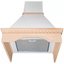 Особенно разнообразен ассортимент классических вытяжек с окантовкой из натурального дерева. Корпус таких моделей выполняется в спокойном белом или бежевом цвете, хорошо сочетающемся с оттенками натурального дерева — мореного дуба, бука, вишни или ореха. Нередко для окантовки используется окрашенное дерево в тон с цветом купола: особенно популярны оттенки ванили, бежевый и кремовый. Иногда дерево специально оставляют неокрашенным, чтобы пользователь мог подобрать оттенок самостоятельно.