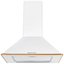 Особенно разнообразен ассортимент классических вытяжек с окантовкой из натурального дерева. Корпус таких моделей выполняется в спокойном белом или бежевом цвете, хорошо сочетающемся с оттенками натурального дерева — мореного дуба, бука, вишни или ореха. Нередко для окантовки используется окрашенное дерево в тон с цветом купола: особенно популярны оттенки ванили, бежевый и кремовый. Иногда дерево специально оставляют неокрашенным, чтобы пользователь мог подобрать оттенок самостоятельно.