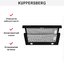 Вытяжки, встраиваемые в столешницу — эффективная инновация, которая подойдет для установки в кухне любой площади. Такие вытяжки размещаются за варочной поверхностью или рядом с ней. В отключенном состоянии всасывающая панель находится под столешницей, но после включения одной или нескольких конфорок она автоматически выдвигается при помощи специального лифтового механизма. Загрязненный воздух улавливается, не успевая распространиться по помещению. Когда вытяжка убрана, на виду остается только сенсорная панель управления. Недостатком подобных моделей является только сравнительно высокая цена.