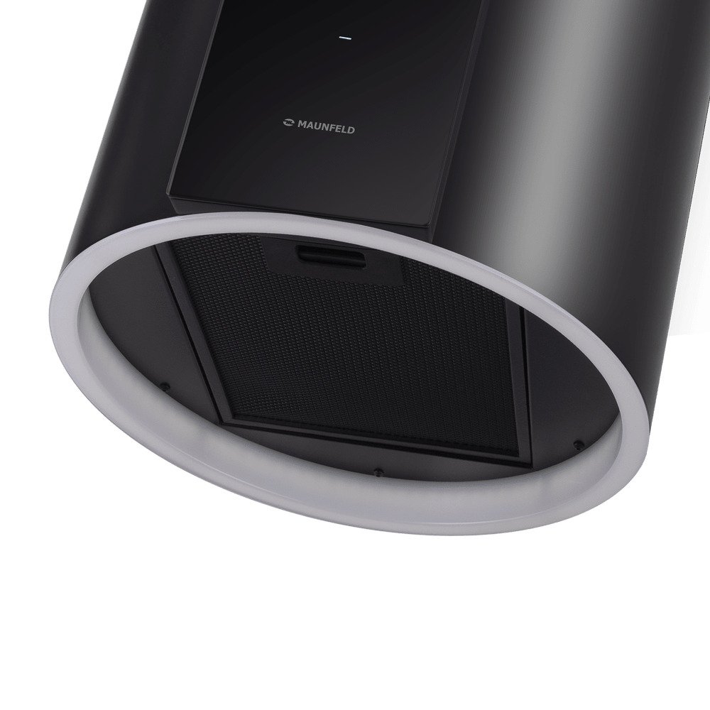 Данная вытяжка крепится к потолку — обычно над кухонным островом, где расположена рабочая зона. Обратите внимание на цветовые сочетания модели Maunfeld ALBA 39 Isla Black, чтобы органично вписать ее в свою квартиру. Оттенок корпуса: черный. Благодаря лампочкам, которые расположены на нем, можно освещать плиту и столешницу рядом, чтобы готовить было еще проще и приятнее.