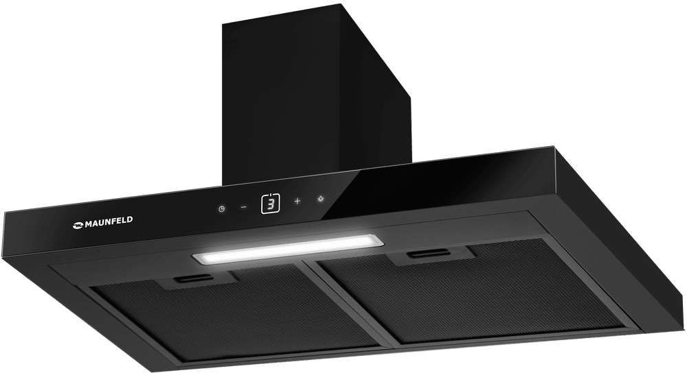 Обратите внимание на цветовые сочетания модели Maunfeld Breeze 90 черный, чтобы органично вписать ее в свою квартиру. Оттенок корпуса: черный. Благодаря лампочкам, которые расположены на нем, можно освещать плиту и столешницу рядом, чтобы готовить было еще проще и приятнее.