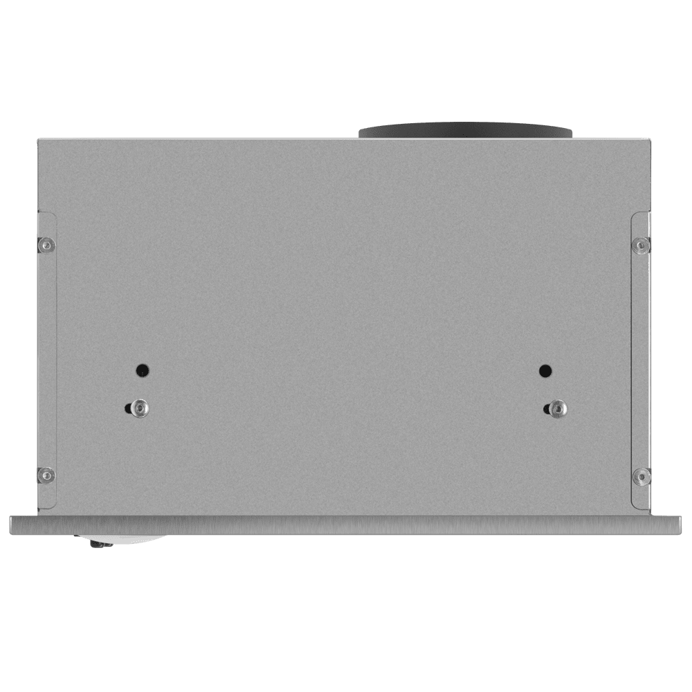 Воздух всасывается по периметру вытяжки через узкие щели. Он собирается в потоки, которые направляются прямо к фильтрам внутри, не рассеивается на кухне. Благодаря этой технологией вытяжку можно сделать компактнее и энергоэффективнее.